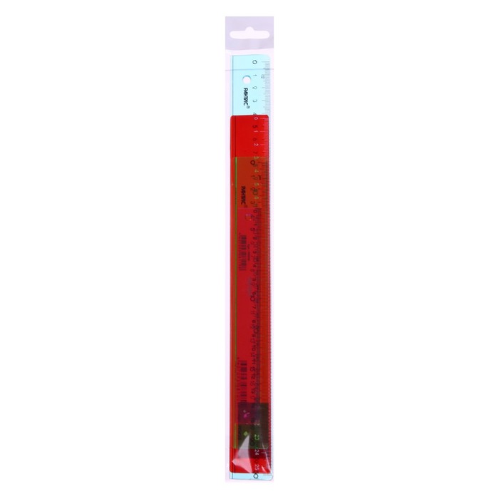 - Прозрачная линейка из яркого тонированного пластика.