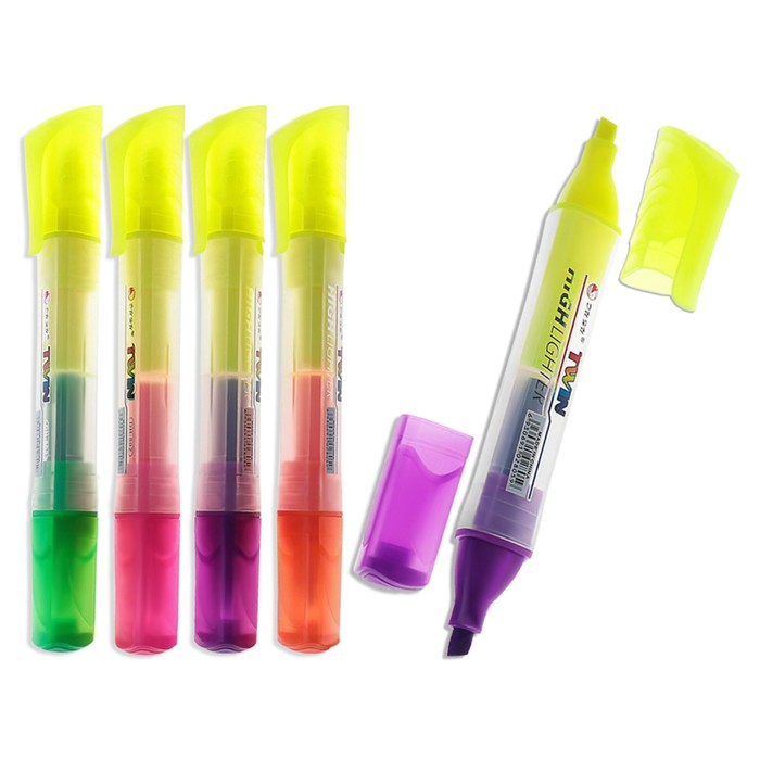 Набор 4 шт. (3+1 повторяющийся цвет) маркер текстовыделитель наконечник скошенный 5 мм корпус треугольный двухцветный