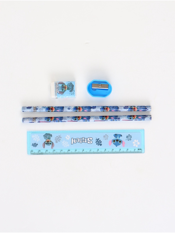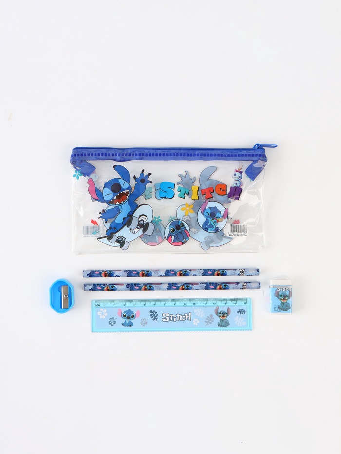 Канцелярский набор из 5 предметов: точилка, ластик, 2 карандаша, линейка — всё в стильном пенале с принтом «Стич». Яркий, практичный комплект для школы и творчества. Качественные канцелярские принадлежности удобно хранятся в мягком пенале с застёжкой. Идеально подходит для дошкольников и школьников. Отличный выбор для учебного года или в подарок. Пусть учёба будет весёлой и яркой в компании любимого инопланетянина!