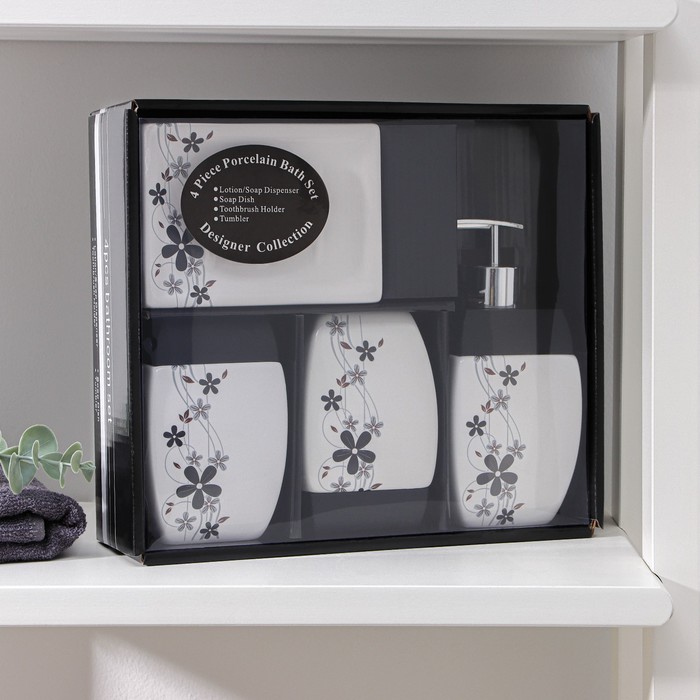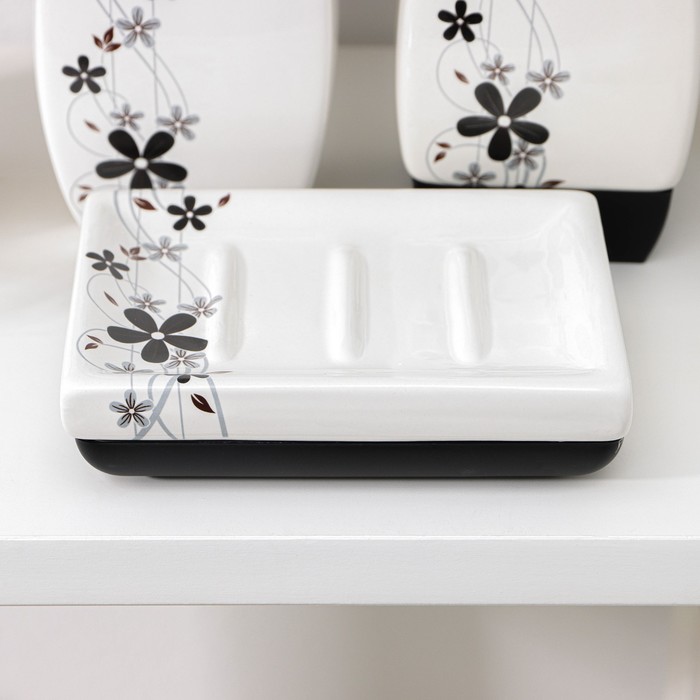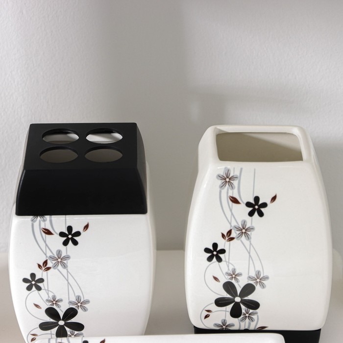 Набор аксессуаров для ванной комнаты «Грация», 4 предмета (дозатор 400 мл, мыльница, 2 стакана), цвет бело-чёрный