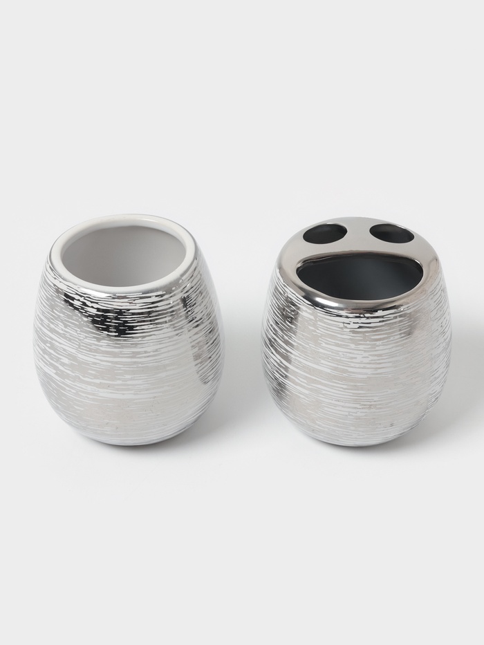 Набор аксессуаров организует пространство и станет стильным украшением Вашей ванной комнаты. За счет сдержанного дизайна данный керамический набор в ванную подойдет к любому дизайну ванной комнаты. Набор состоит из 4 предметов: 2 стакана, мыльница, дозатор.