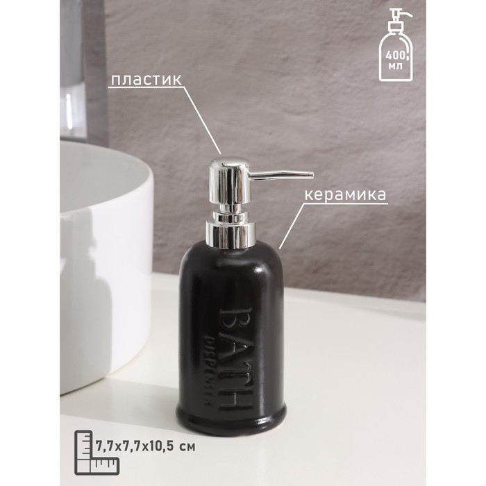 Набор аксессуаров для ванной комнаты SAVANNA «Бэкки», 3 предмета (мыльница, дозатор для мыла 400 мл, стакан), цвет чёрный