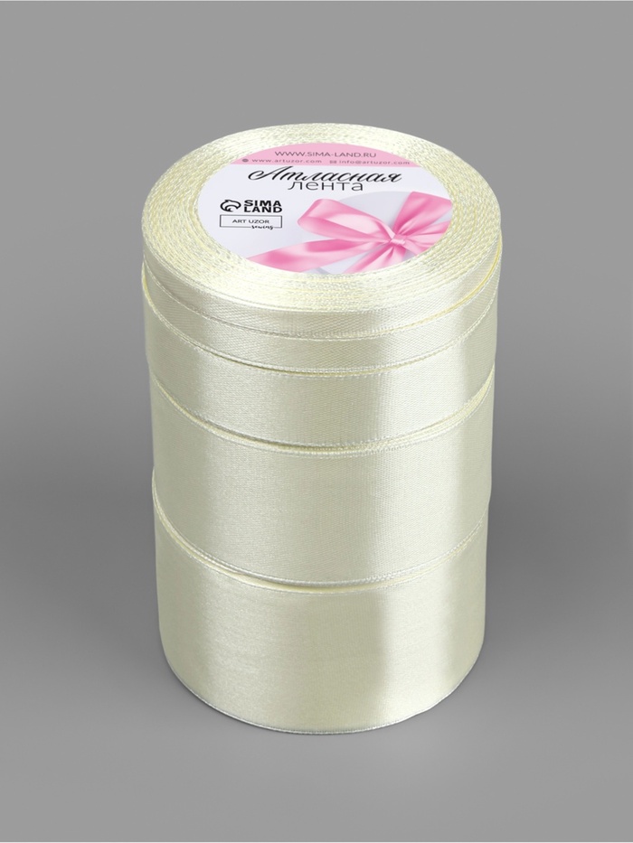 Набор атласных лент, 5 шт., 6/10/20/40/50 мм, 23±1 м, сливочный №02