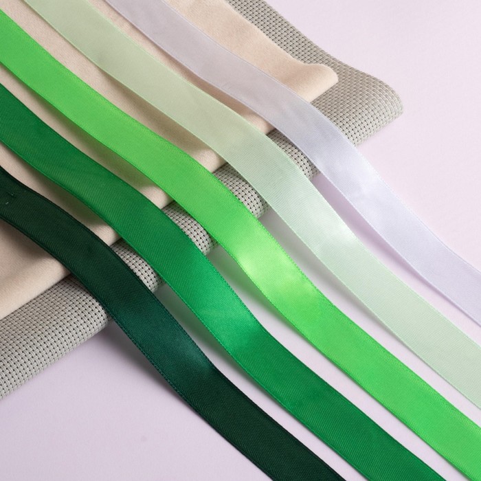 Набор атласных лент, 5 шт, размер 1 ленты: 20 мм × 23 ± 1 м, цвет зелёный спектр