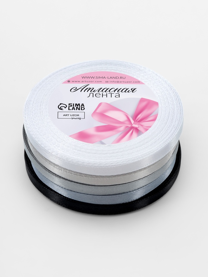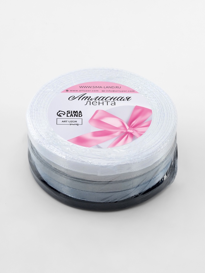 Набор атласных лент, 5 шт, размер 1 ленты: 6 мм × 23 ± 1 м, цвет серый спектр