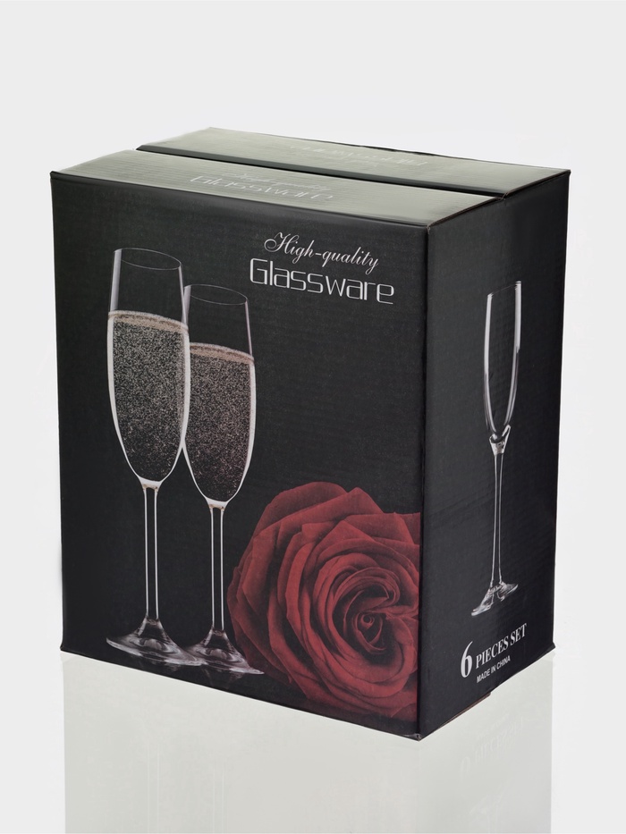 Набор из шести бокалов для шампанского создан для тех, кто ценит атмосферу праздника. Каждый бокал объёмом 250 мл — это идеальная форма для игристых вин: вытянутая флейта бережно сохраняет пузырьки, раскрывая аромат и элегантность напитка. Прочный прозрачный стеклянный набор станет универсальным украшением стола для торжественных ужинов, свадеб или романтических вечеров.