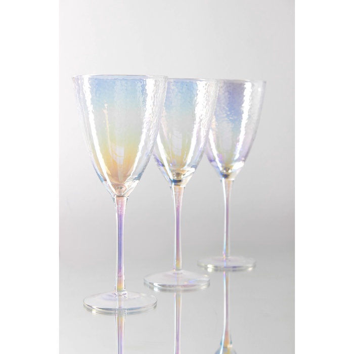 Набор винных бокалов —не декор, а инструмент уважения: к напитку, к гостю, к моменту. Перламутровая поверхность ловит свет мягко, без бликов, придавая каждому бокалу глубину и теплоту, как у натурального жемчуга. Никаких рисунков — только игра текстуры и оттенков, подчёркивающая цвет вина.