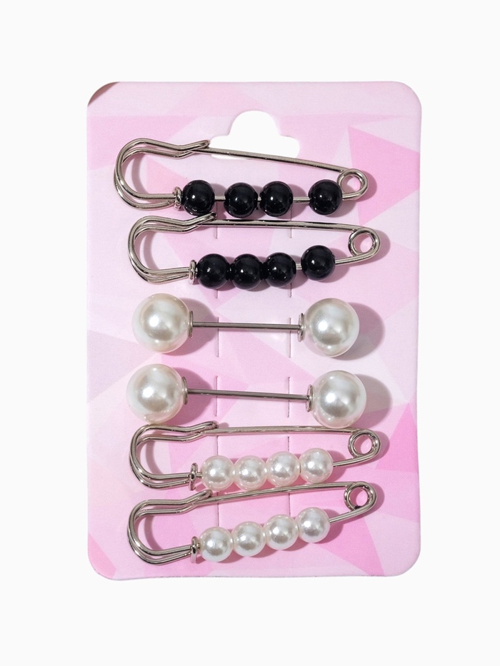 Набор из шести изящных булавок длиной 3,5 см — это стильное дополнение к любому образу, которое привнесёт утончённость и элегантность. Чёрно-белая цветовая гамма в сочетании с серебристым металлическим основанием создаёт гармоничный контраст, подчёркивающий изысканный вкус и универсальность аксессуара.