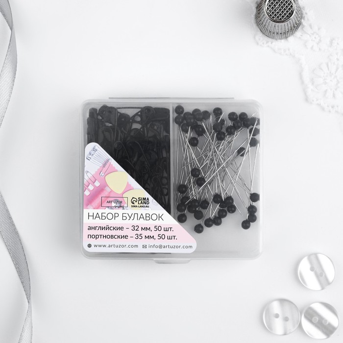 Булавки — одни из самых необходимых расходных материалов каждой рукодельницы. Портновские применяются при раскрое, примерке и пошиве изделий, а английские пригодятся для закалывания материала, драпировки ткани или создания украшений. Изделия выполнены из металла, они прочные и гладкие.