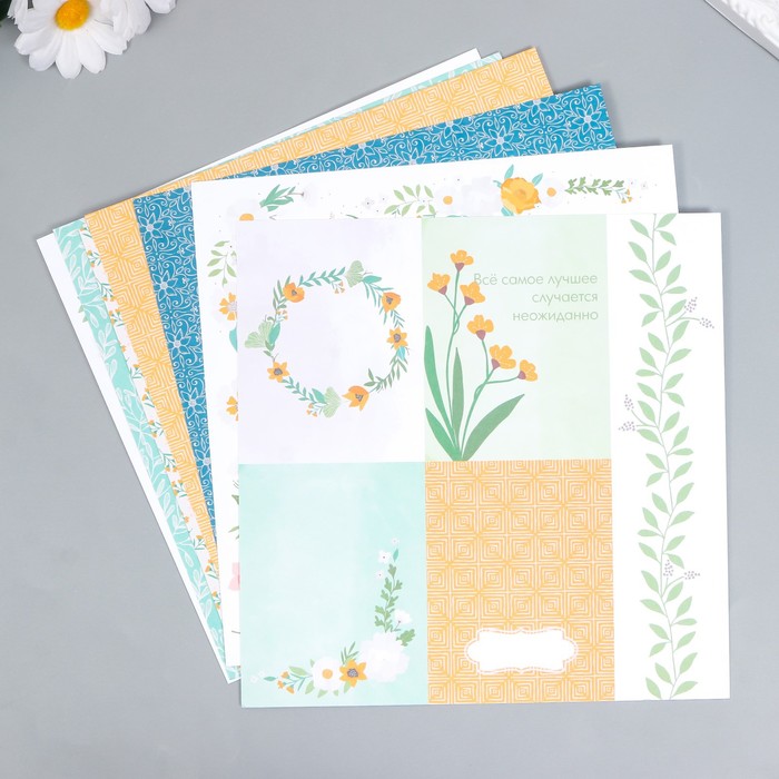 Набор бумаги для скрапбукинга двусторонняя «Флора», 20×20 см, 8 листов, 190 г/м2