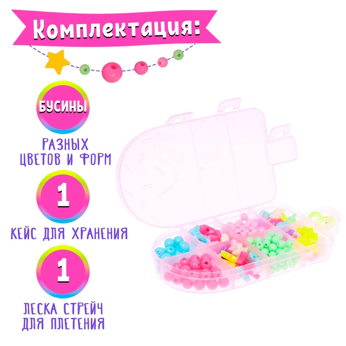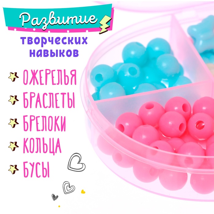 Набор бусин для творчества и рукоделия «Эскимо», в контейнере - органайзере, создание украшений и плетение своими руками