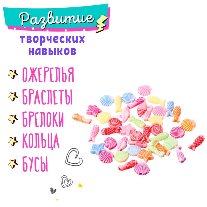 В наборе есть всё необходимое для творчества: разноцветные бусины, из которых можно делать аксессуары в разных стилях.