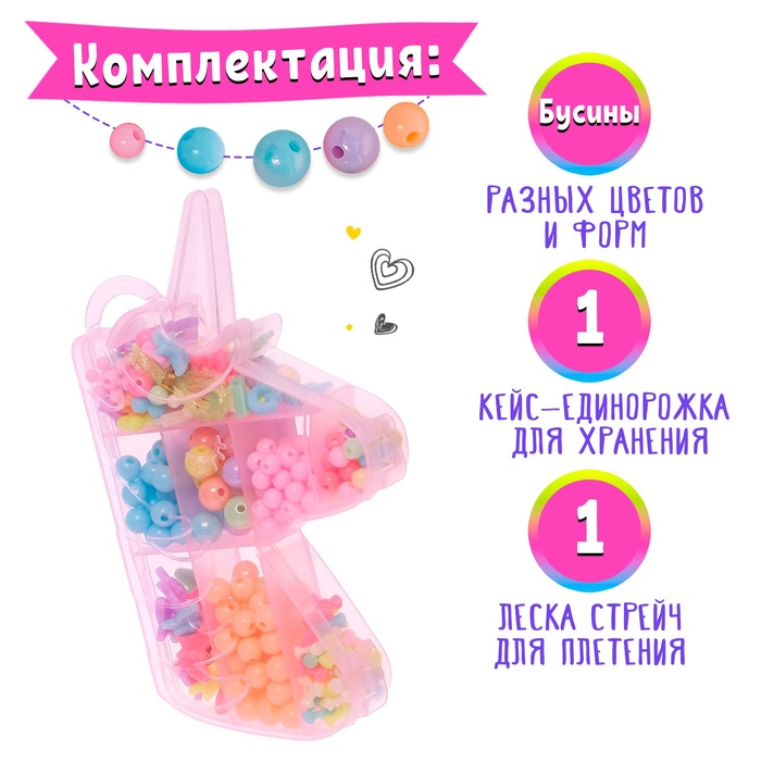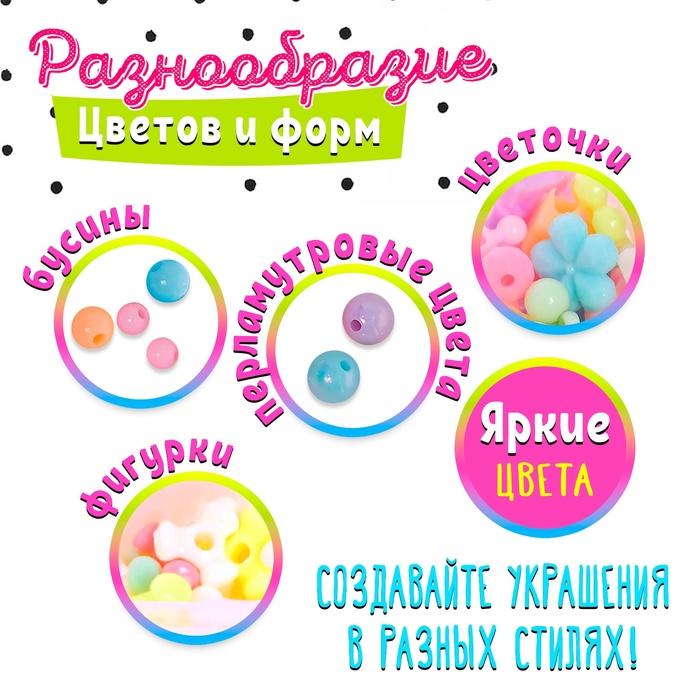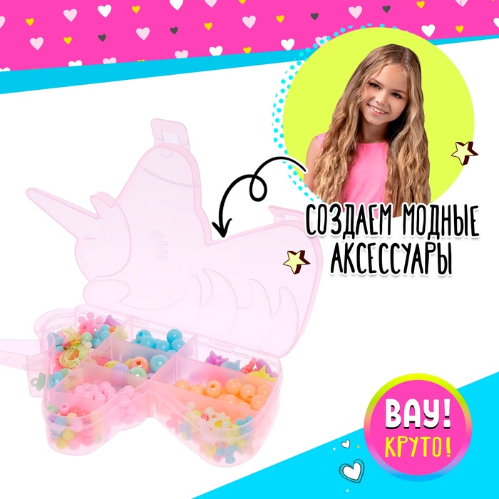 Набор бусин для творчества и рукоделия «Волшебные бусины», в контейнере - органайзере, создание украшений и плетение своими руками