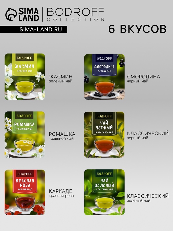 Эта коллекция включает в себя тщательно отобранные сорта чая: черный, зеленый, травяной и каркаде, что делает ее идеальной для любого времени суток. Каждый пакетик содержит отборные чайные листья, которые обеспечивают насыщенный вкус, позволяя насладиться истинным искусством чаепития.