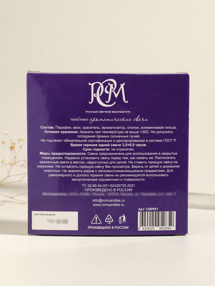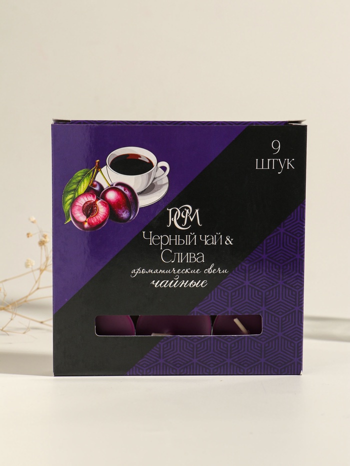 Набор чайных свечей ароматизированных "Чёрный чай и слива" 9 штук
