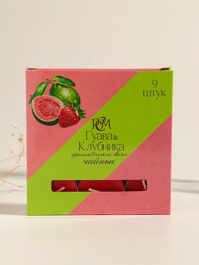 Набор чайных свечей ароматизированных "Гуава и клубника" 9 штук