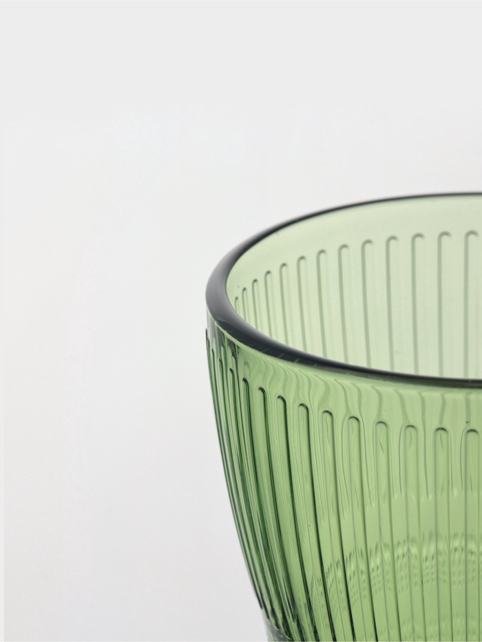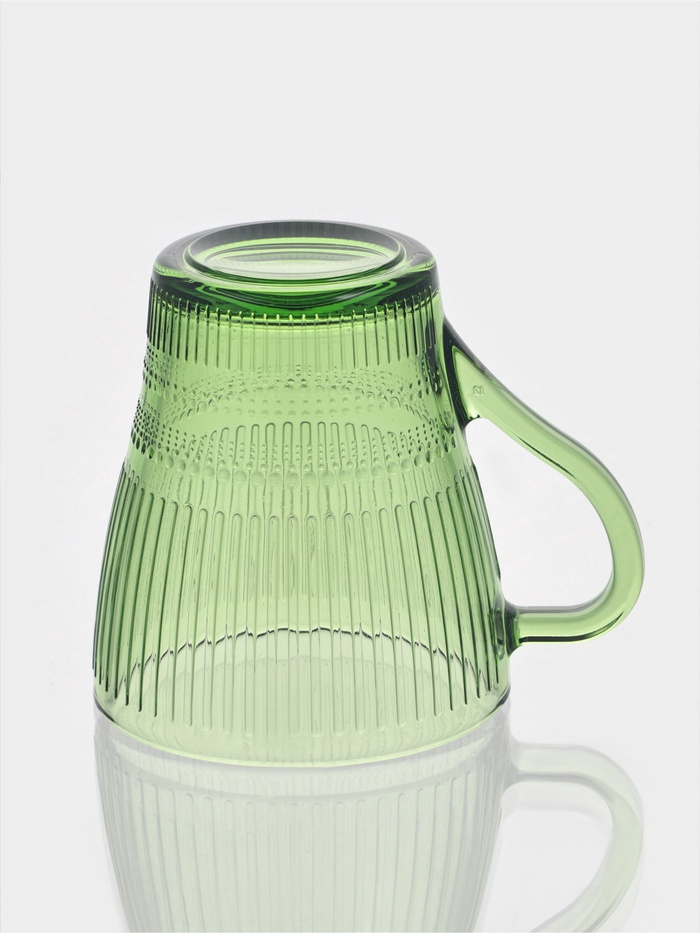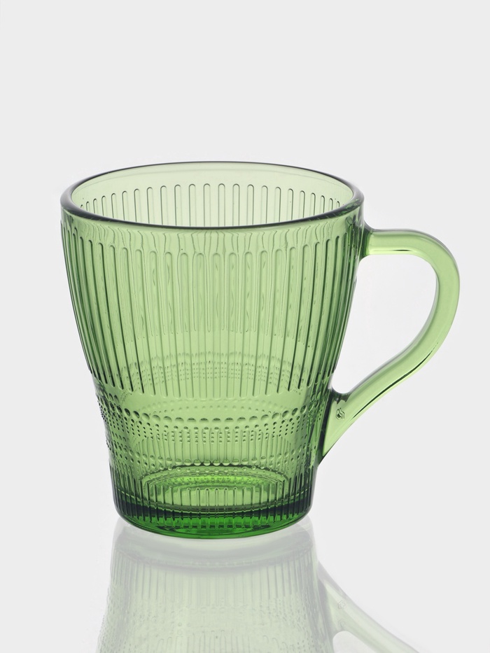 - Однотонный зелёный цвет сохраняет нейтральность образа, не отвлекая от содержимого кружки.