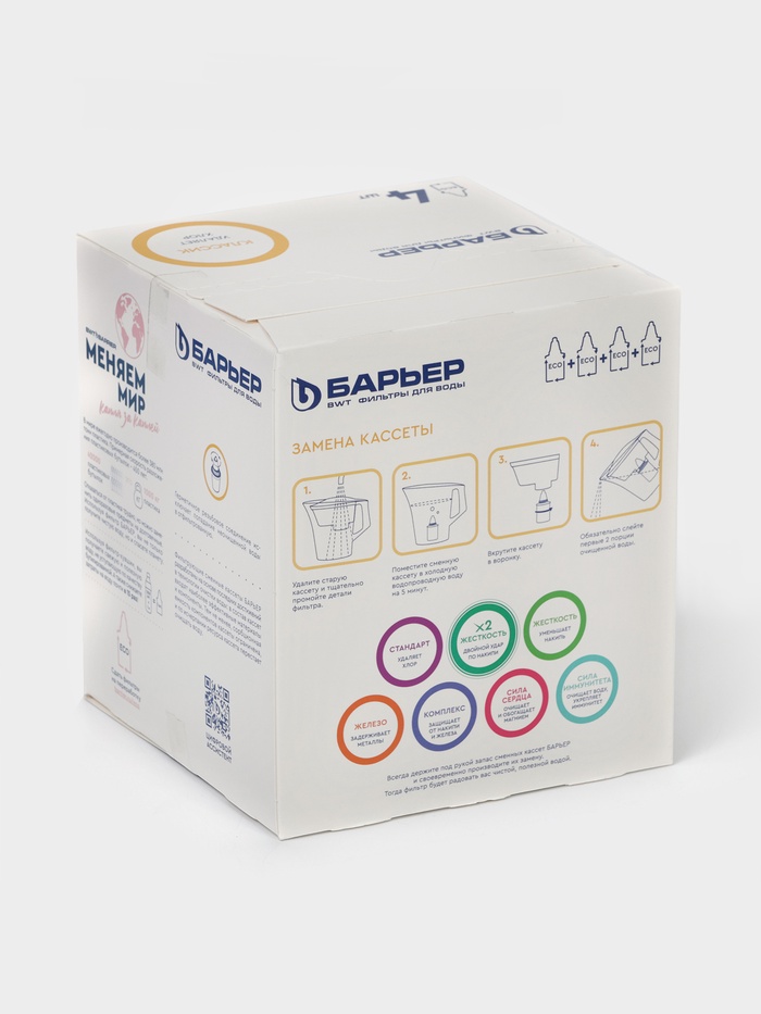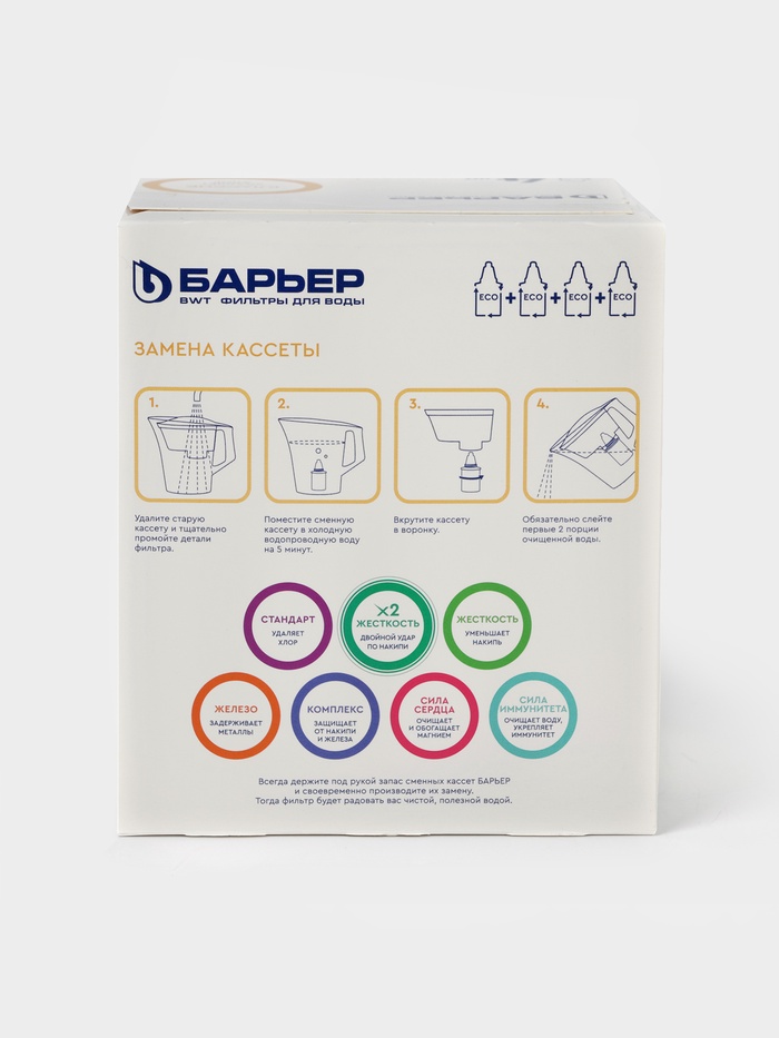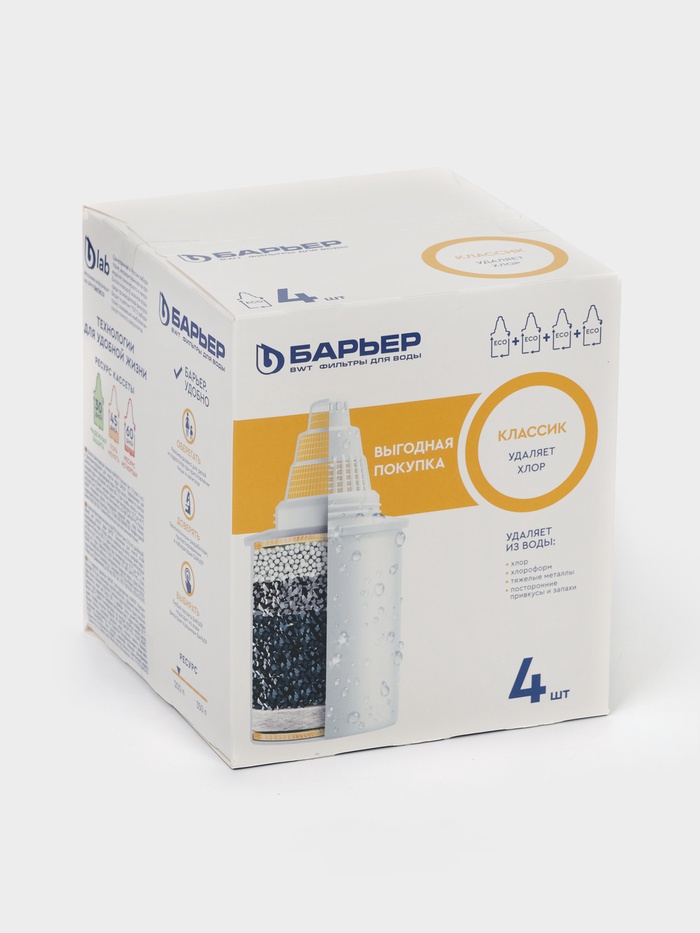 Сменная кассета «Классик» — экономичный фильтр базовой очистки воды от хлора, хлорорганических загрязнений, нефтепродуктов и тяжёлых металлов. Картридж подходит для любых фильтров-кувшинов «Барьер». Герметичная резьба исключает проникновение неочищенной воды в отфильтрованную.