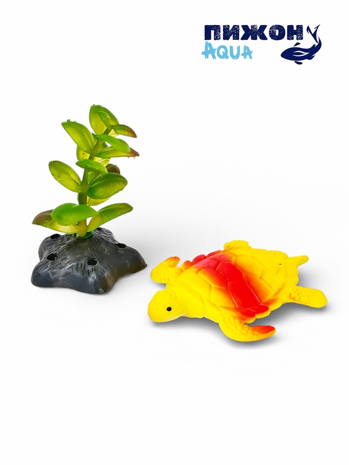 Набор декора для аквариума "Черепаха и трава"