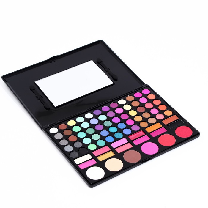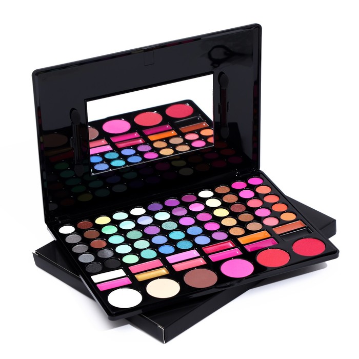 Палетка теней имеет удобную форму и широкий выбор цветов. Тени хорошо пигментированы, не пылят, не скатываются, отлично тушуются и наносятся на веки. Подходят как для яркого вечернего макияжа, так и для повседневного. Бальзам для губ обеспечивает бережный уход и дарит ощущения мягкости и комфорта. Румяна освежают лицо. Их можно наносить на «яблочки» щёк, а также на подвижное веко.