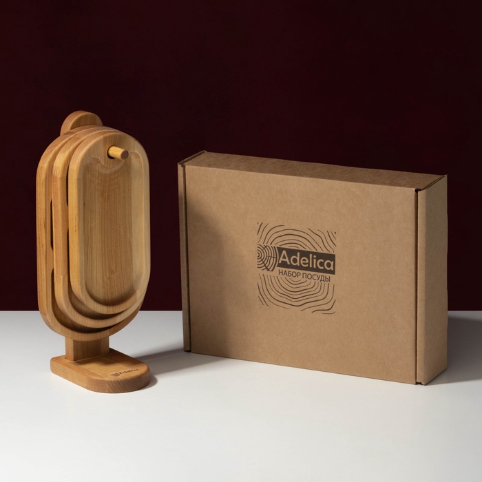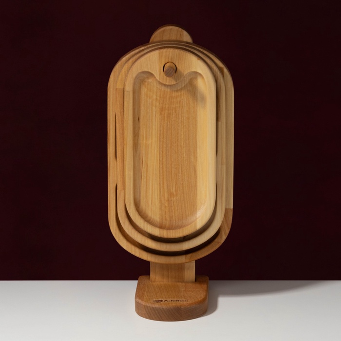 Набор деревянных менажниц и сервировочных досок на подставке Adelica, 3 шт, 25×14 см, 23×12 см, 21×10 см