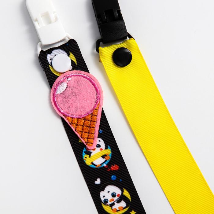 Изделие фиксируется на одежде ребёнка. На конце цепочки есть карабин, который зацепляется за кольцо пустышки. Надёжное крепление убережёт вещь от падения на пол, если малютка случайно выронит её изо рта.
