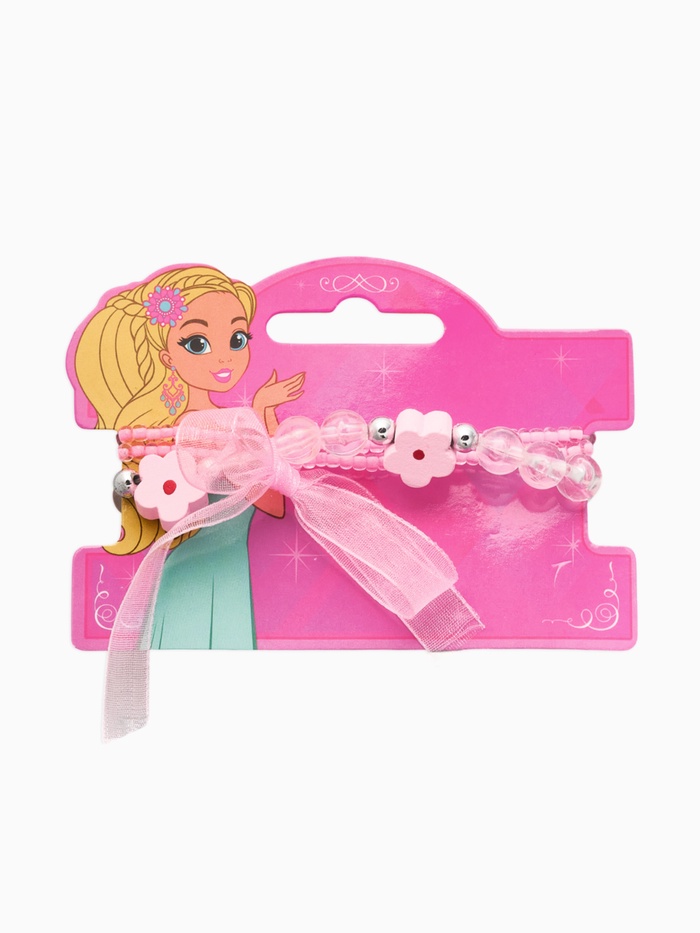 Набор детских браслетов 3 шт. «Выбражулька» с бантом, цветок, d=6 см бело-розовый