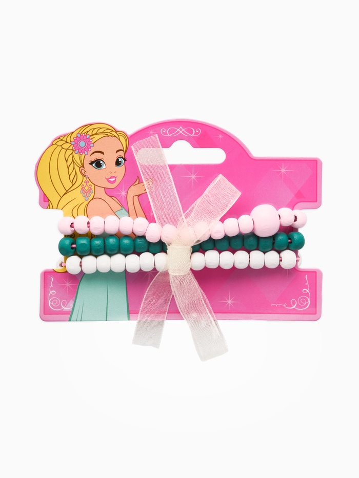Набор детских браслетов 3шт. «Выбражулька» с бантом, бабочка, d=6 см, розово-зеленый