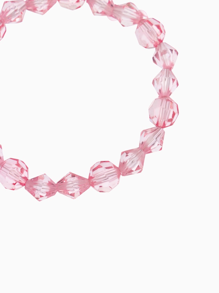 Нежный розовый набор детских украшений включает браслет, кольцо, бусы и две резинки для волос. Все элементы выполнены из лёгкого пластика и текстиля, что делает их комфортными и безопасными для девочек.