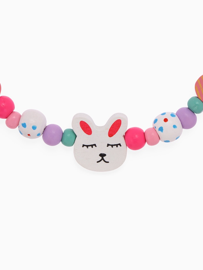 - Яркий дизайн: разноцветные бусы и браслет с изображением зайчика привлекают внимание и радуют глаз.
