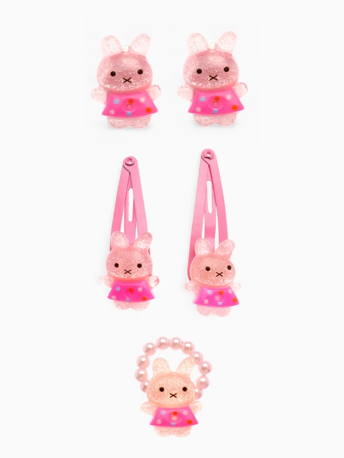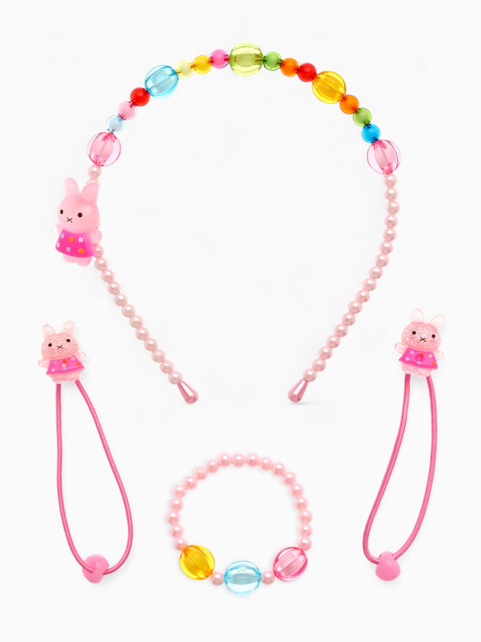 Набор детских украшений Выбражулька «Зайчики», 9 предметов: ободок, 2 резинки, 2 заколки, клипсы, кулон, браслет, кольцо, МИКС