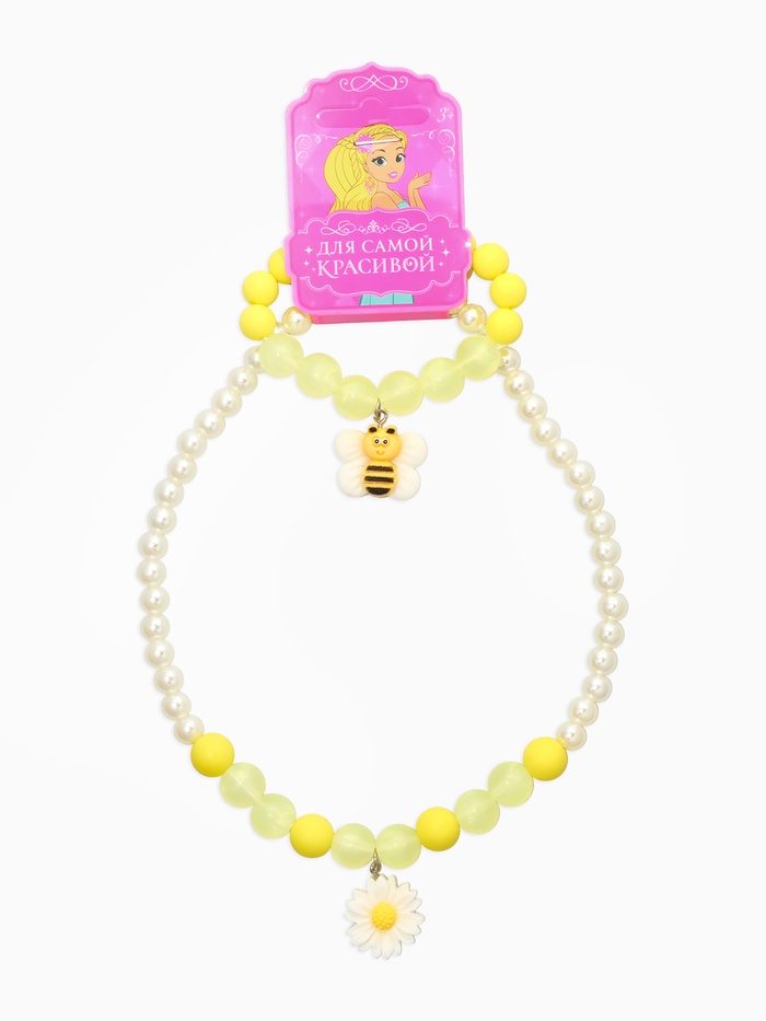 Набор детский "Выбражулька" 2 пред-а: бусы, браслет, пчелка, бело-желтый