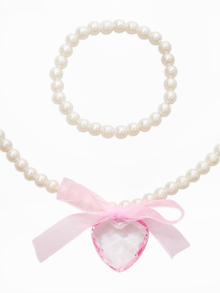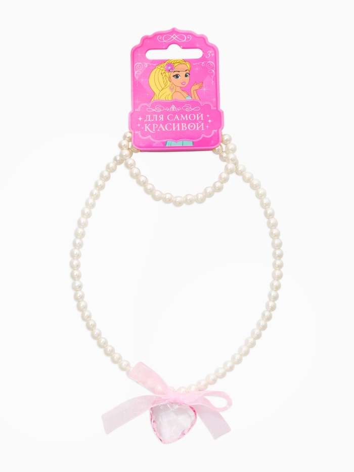Набор детский «Выбражулька» 2 предмета: бусы, браслет d=5,5 см, сердце, бант, бело-розовый 1096721