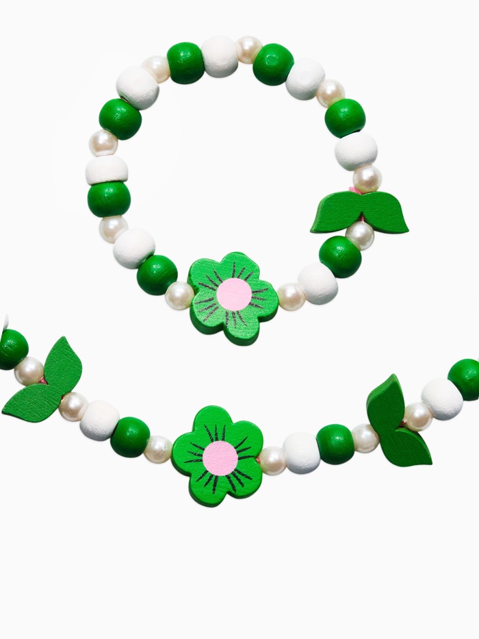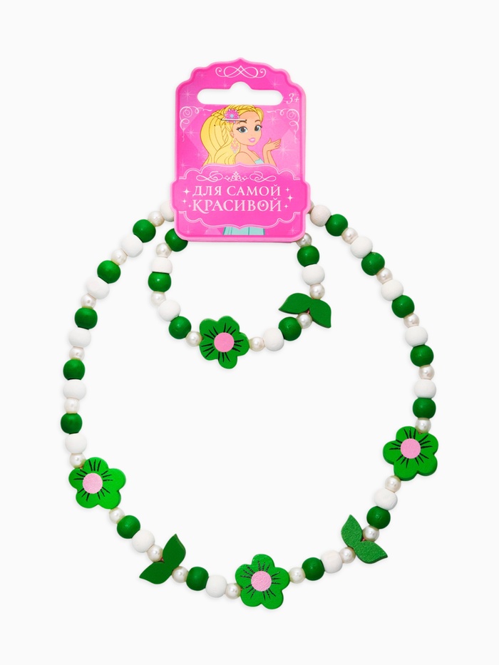 Набор детский «Выбражулька» 2 предмета: бусы, браслет d=6 см, цветы, бело-зеленый