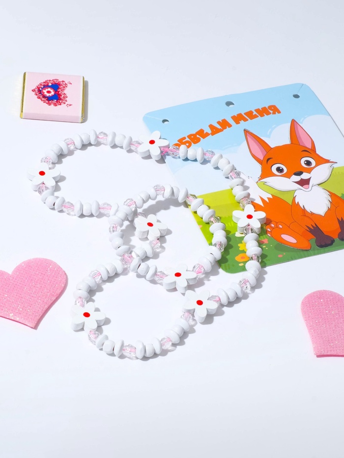 Нежный бело-розовый набор из бус и браслета с трафаретом в виде милого лисёнка — это не просто украшения, а маленькое путешествие в мир творчества и самовыражения для девочек. Каждый элемент выполнен из безопасных и лёгких материалов — пластика и дерева, что делает аксессуары удобными для ежедневного ношения и игр.