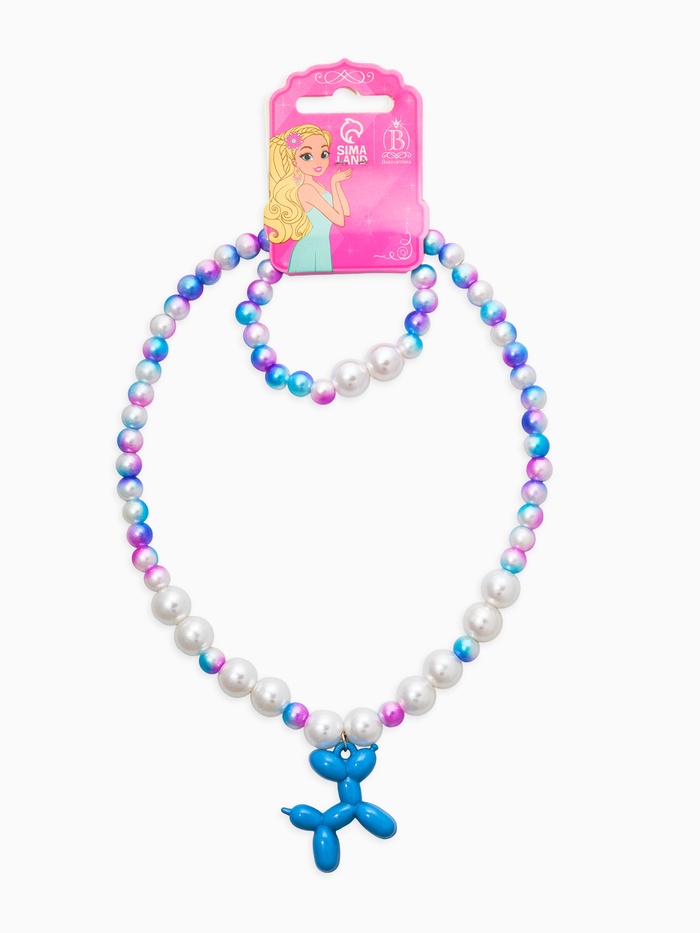 Набор детский "Выбражулька" 2пред-а: бусы, браслет, собака, бело-голубой
