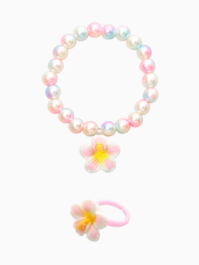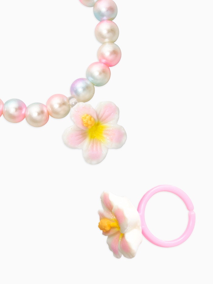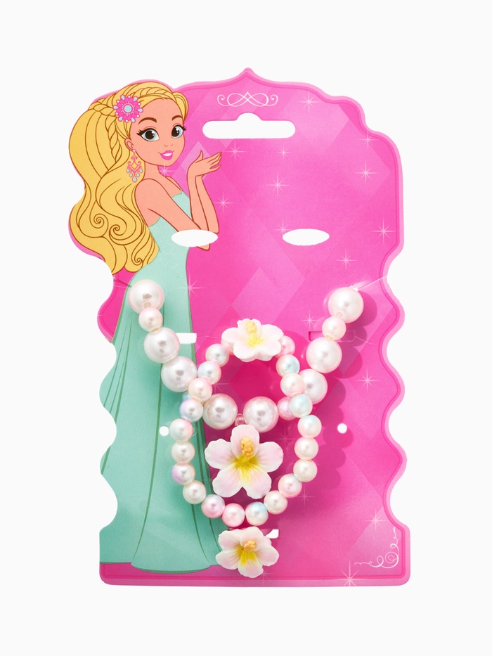 Набор детский "Выбражулька" 3 пред-а: бусы, браслет, кольцо б-р, цветок, жемчуг, желто-белый 10967