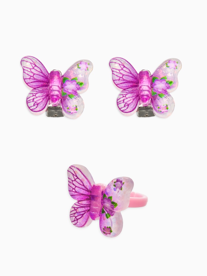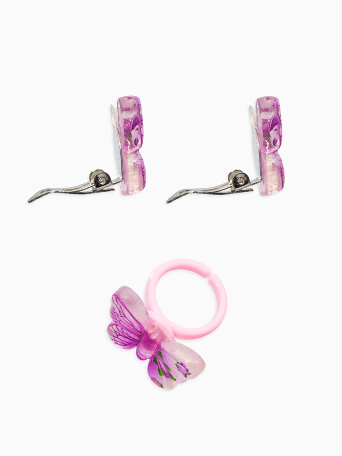 Набор детский "Выбражулька" 3 предмета: клипсы, кольцо, браслет, бабочки, цвет розовый