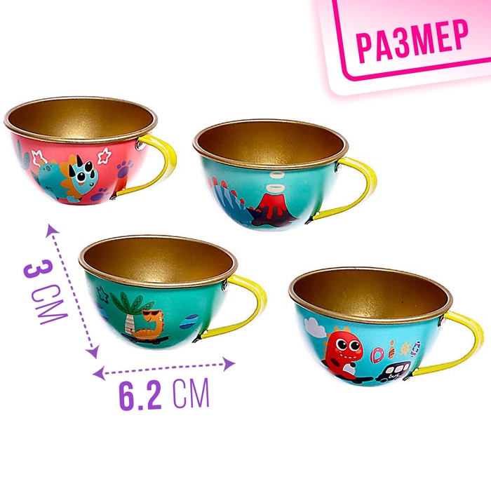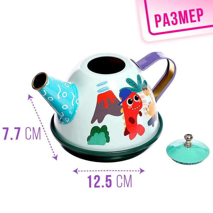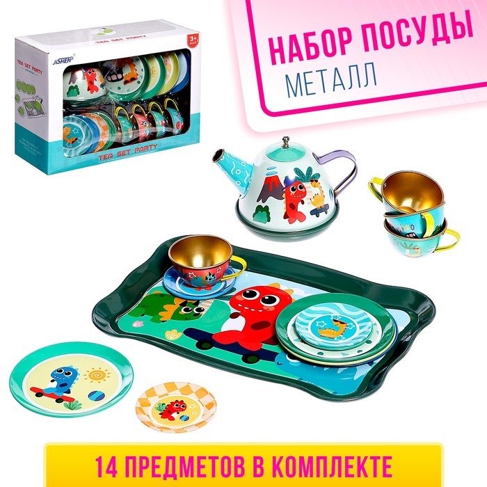 Набор металлической детской посуды «Дино» станет прекрасным дополнением к игровой кухне или самостоятельной игрушкой для юных любителей чаепитий. Благодаря качественным материалам и яркому дизайну, этот комплект идеально подходит для малышей, начиная с трёх лет.