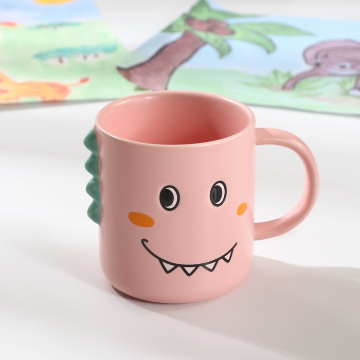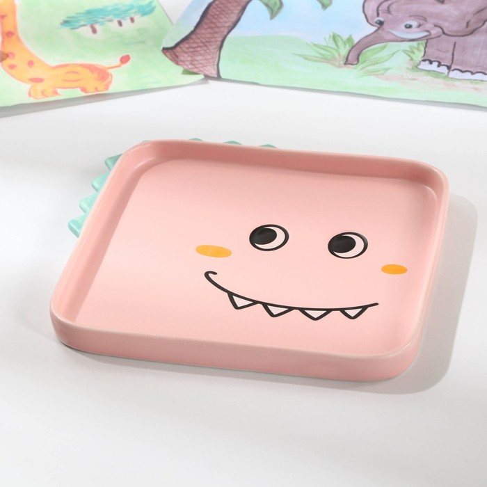 Набор детской посуды из керамики «Дино», 4 предмета: блюдо 19,5×20,5 см, миска 350 мл, кружка 350 мл, ложка, цвет розовый
