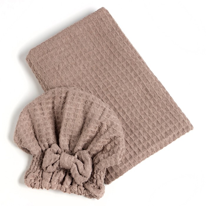 Набор для бани и ванной Этель «Вафля» полотенце 70*140 см+чалма 21*25 см, цв.коричневый