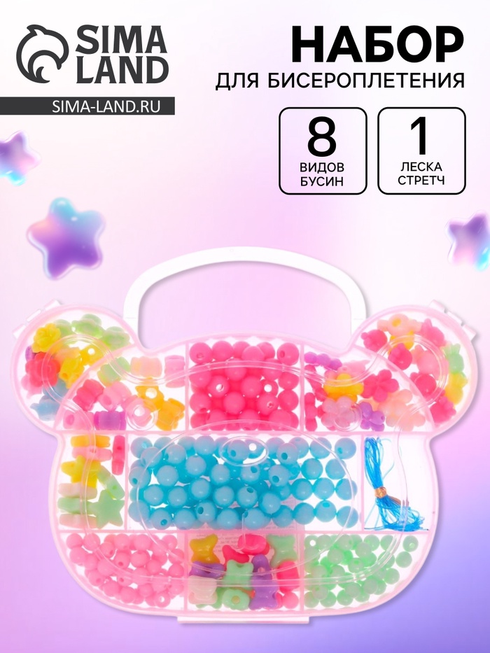 - С помощью набора можно сплести браслеты, ожерелья и другие аксессуары. Эластичная леска упрощает процесс работы, делая его доступным даже для начинающих.
