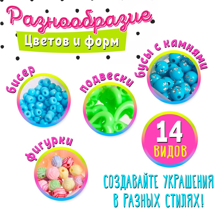 В кейсе есть всё необходимое для творчества: 14 видов элементов, из которых можно делать аксессуары в разных стилях.