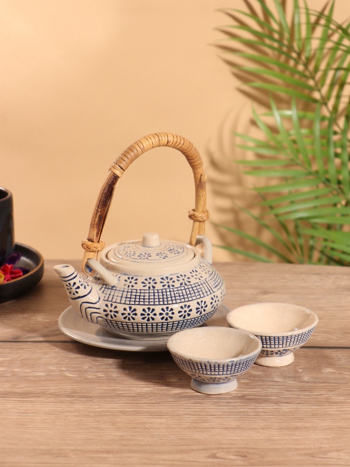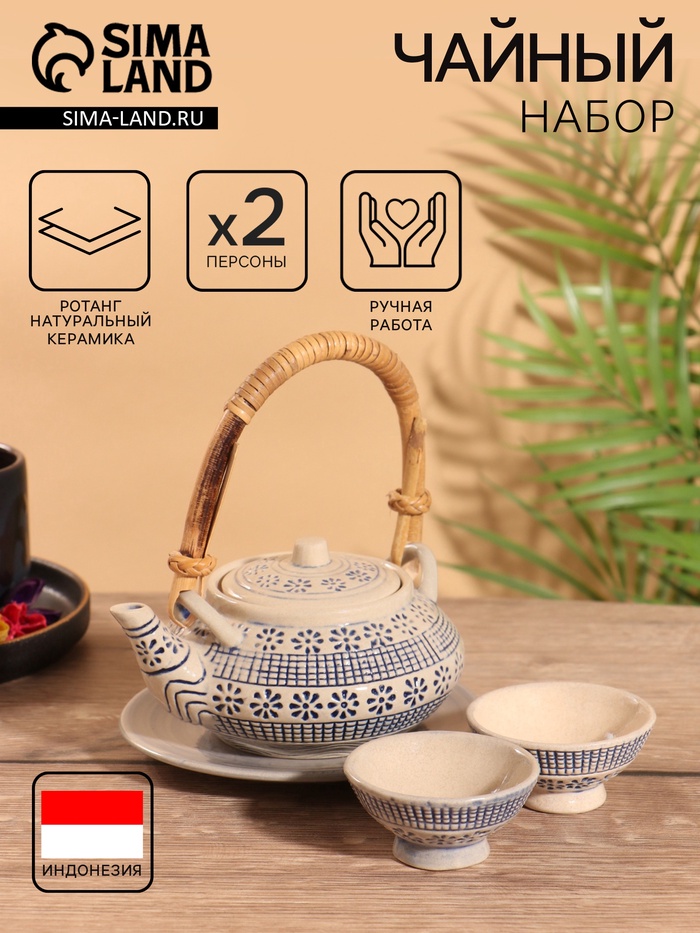 Элегантный набор для чаепития «Айша», выполненный из высококачественной керамики с изящным цветочно-растительным рисунком, воплощает в себе слияние эстетики и функциональности. Бежевые, белые и синие оттенки набора создают приятную атмосферу за вашим столом. Включает фигурный чайничек с деревянной ручкой и две пиалы. Порадуйте себя и своего спутника утренним или вечерним чаепитием с этим прекрасным набором. Обратите внимание: не подходит для использования в СВЧ-печи и посудомоечной машине.