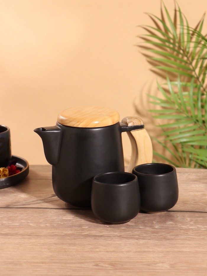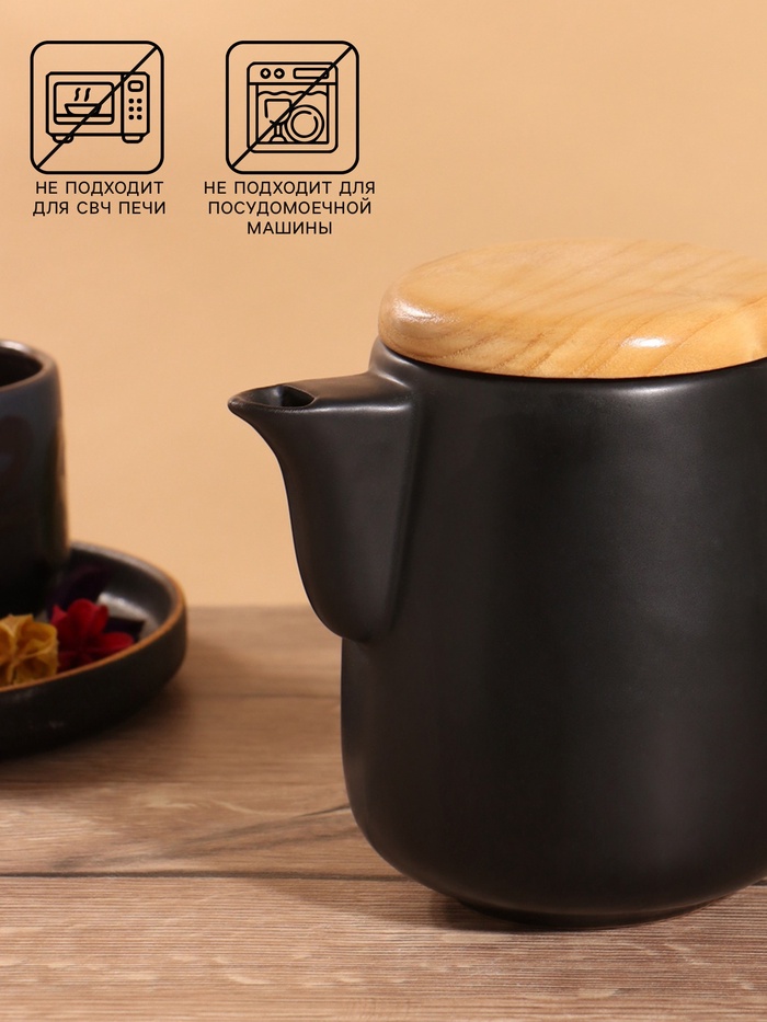 Набор для чаепития «Загадка» в чёрно-бежевых тонах — идеальный выбор для уютного чаепития на двоих. Этот изысканный керамический комплект состоит из оригинального чайничка и двух стаканов с фигурной формой. Каждый элемент создан из прочной керамики и украшен стильной деревянной ручкой, что придает ему особенную элегантность. Гладкая текстура поверхности добавляет утонченности в каждую деталь. Набор не предназначен для использования в СВЧ-печи и посудомоечной машине, что делает его нежным и требующим деликатного ухода, но это лишь усиливает его особенность и индивидуальность.