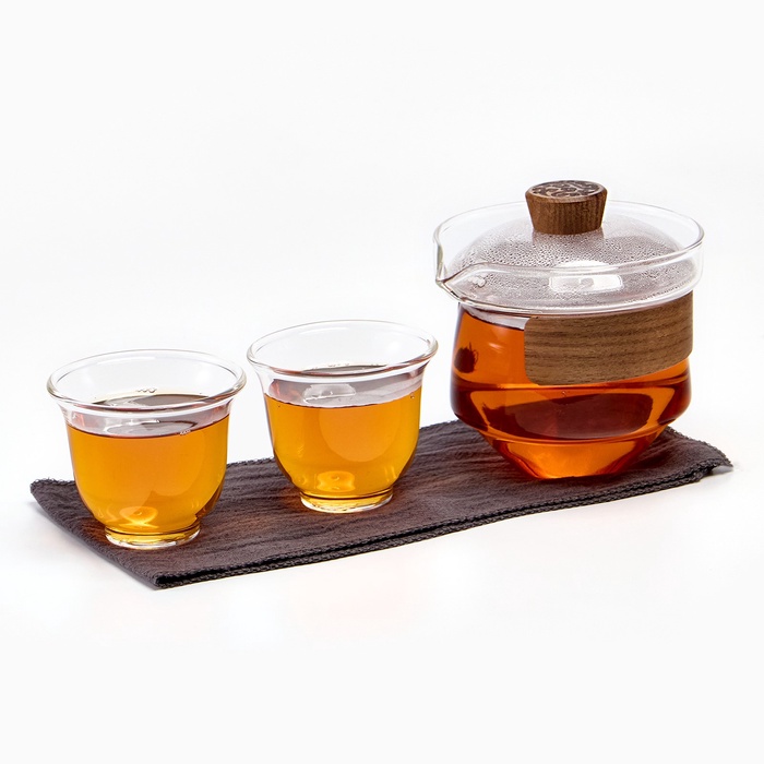 Набор для чайной церемонии 4 предмета, на 2 персоны - идеальный подарок для ценителей изысканного вкуса и традиций. Включает в себя все необходимое для проведения традиционной церемонии, которая позволит вам насладиться чаем, а также погрузиться в атмосферу спокойствия и релаксации. В набор входят 4 предмета, которые помогут вам создать уютную обстановку и провести чайную церемонию на высшем уровне: Заварочный чайник - это емкость, в которой заваривается чай. В нем чай настаивается и приобретает свой вкус и аромат. Крышка заварника служит ситом, которое предотвращает попадание чаинок в пиалу. 2 пиалы - это сосуды, из которых пьют чай, предназначены для каждого участника церемонии. Они имеют удобную форму и размер, чтобы комфортно наслаждаться напитком. Тканевая салфетка - это важный аксессуар, который используется для ухода за предметами из чайного набора. Она изготовлена из материала, который хорошо впитывает воду и не оставляет ворсинок на поверхности. Все предметы подарочного набора упакованы в компактную сумку-чехол, которая обеспечивает удобство хранения и транспортировки. Сумка изготовлена из прочного материала, который защищает набор от повреждений и загрязнений. Имеет удобный подвес и застежку-молнию. Чайный наборй позволяет заваривать различные сорта чая, в зависимости от предпочтений участников церемонии. Это могут быть как классические зеленые и черные чаи, так и более экзотические варианты, например, белый чай, улун, пуэр или связанные чаи.