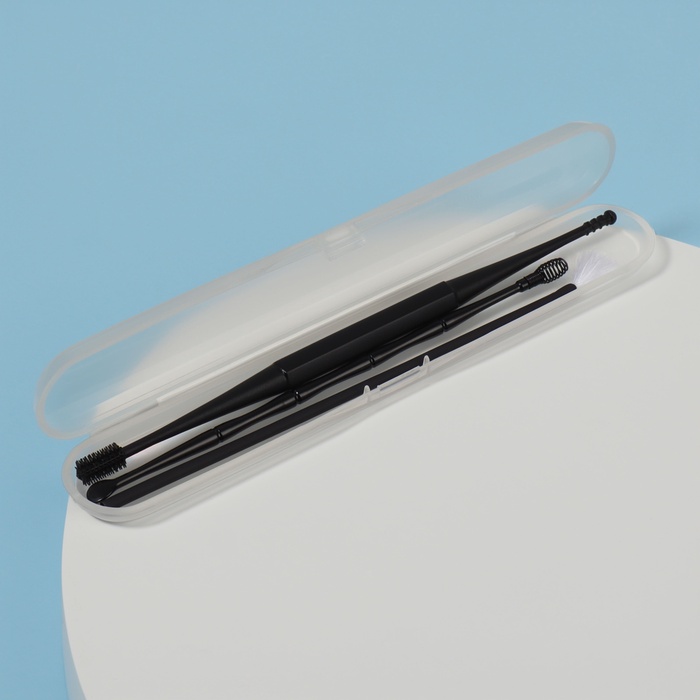 Набор для чистки ушей, 3 предмета, 15.3×2.4×1.1 см, в пластиковом футляре, чёрный