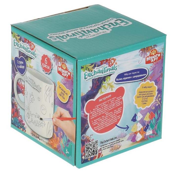 Набор для детского творчества кружка для росписи с декором «Энчантималс» (краски, кисть, стразы)