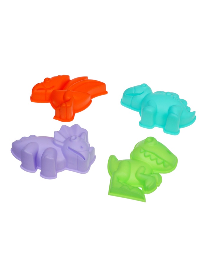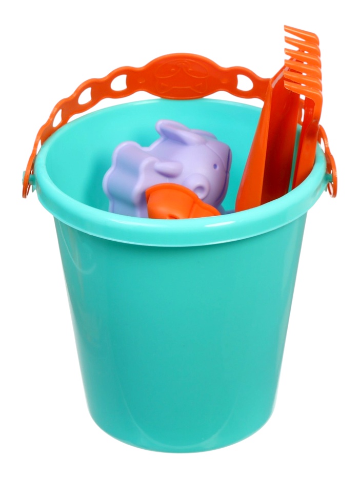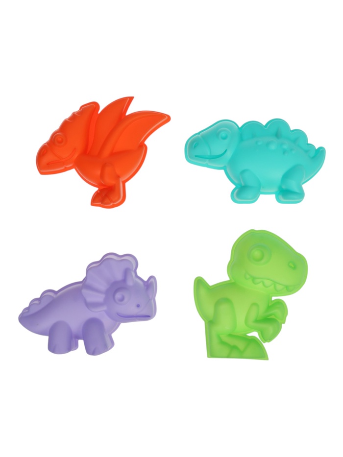 Набор для игры в песке (Ведро 1л, 4 формочки динозавры, грабельки и лопатка)