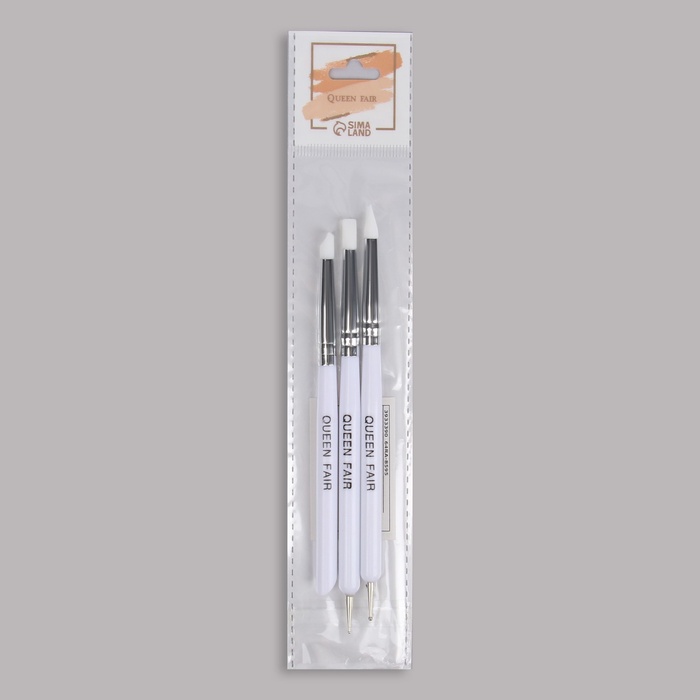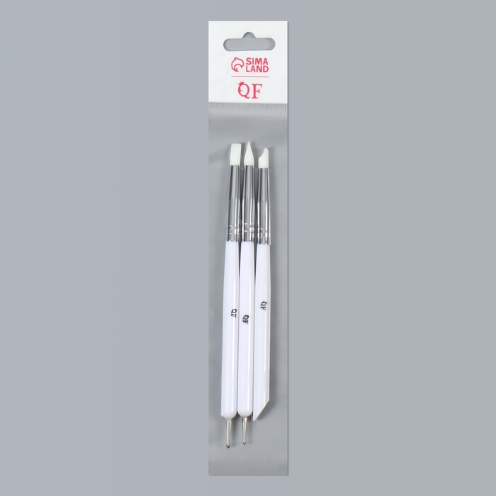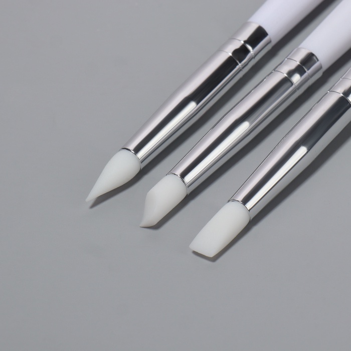 Набор для наращивания и дизайна ногтей: силиконовая кисть - дотс 2 шт., силиконовая кисть - пушер, белый